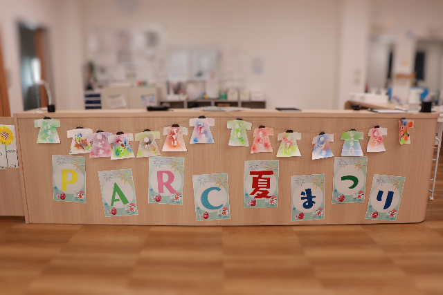 夏祭りらしい雰囲気を感じてもらうことができるように、室内をお祭り仕様に装飾しました。