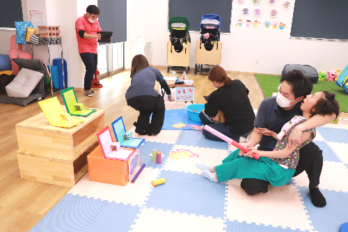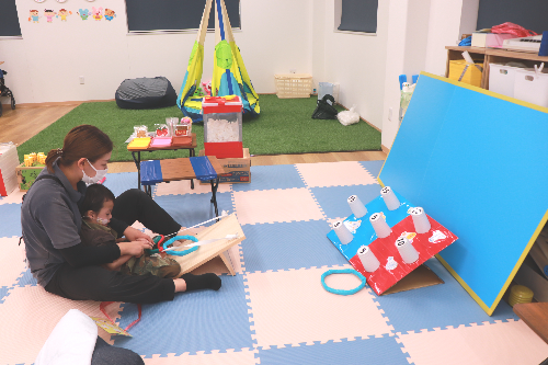 サポートのもとで一つ一つの遊びを楽しみ、「やったね!」「できたね!」という言葉がたくさん飛び交う、温かい時間が流れていました。