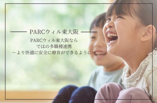 PARCウィル東大阪の最大の特徴は看護師がいることで常時的な医療的ケアが必要なお子さまを万全な体制で受け入れられること、そしてリハビリ専門職が在籍しており、姿勢評価やストレッチ、運動を日常的に行えることです。