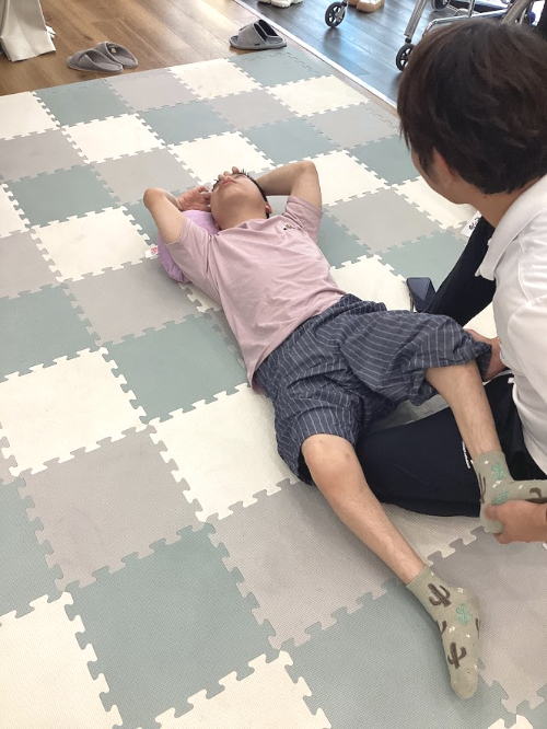 拘縮や筋緊張が多い場合には、運動前にマッサージやストレッチを取り入れ、安心して身体を動かせるよう配慮しています。